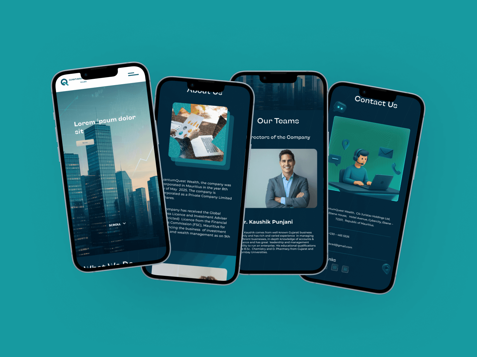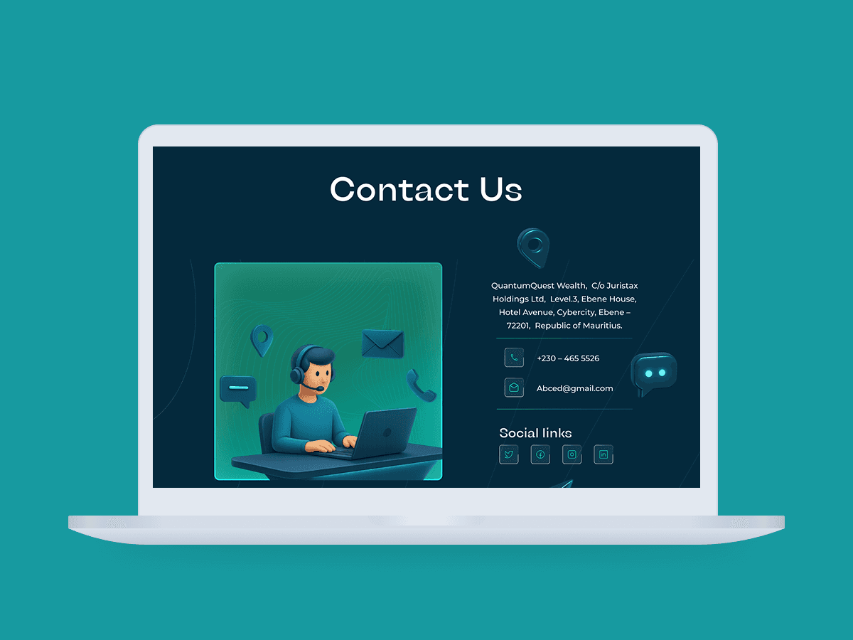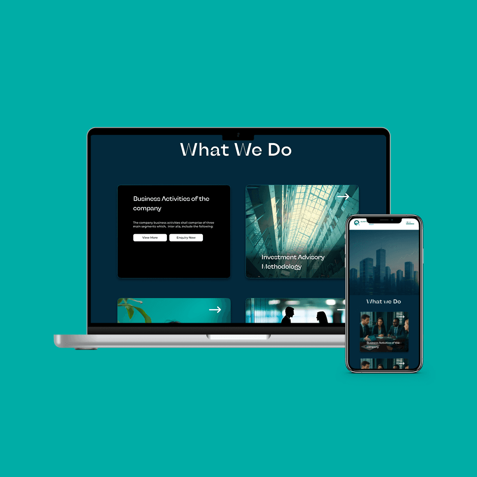 We used a structured layout and calm color palette to create a sense of trust. Custom icons and 3D visual elements were used to represent abstract concepts like wealth management and investment strategy. Animations were applied subtly to guide the user’s attention. Each page was tailored to a specific user journey whether for learning about services or initiating contact.